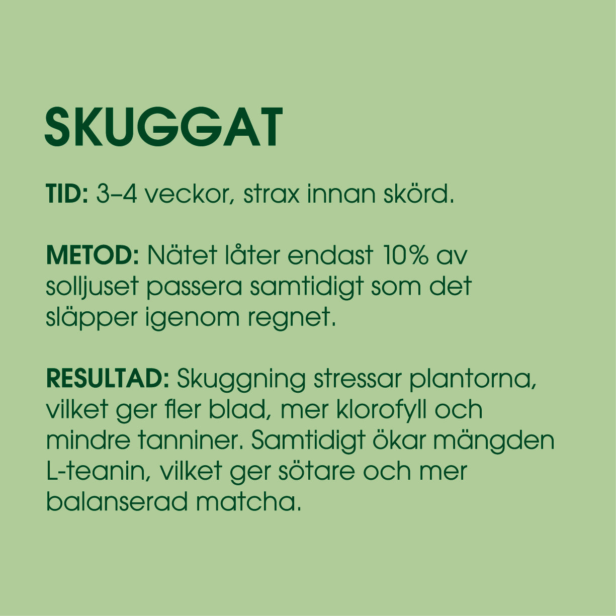 Mängden teanin minskar och bladen blir grövre med varje skörd och man kan även se en tydlig färgskillnad.